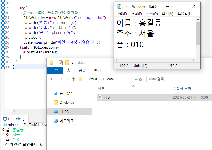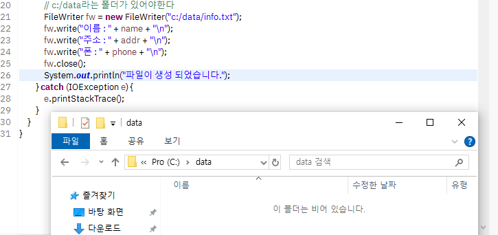 이때 생성시에 FileOutStream의 객체를 매개변수로 전달하여
