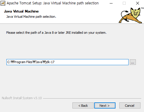 JVM 알아서 찾아짐 경로는 C:\tomcat9.0 에 설치
