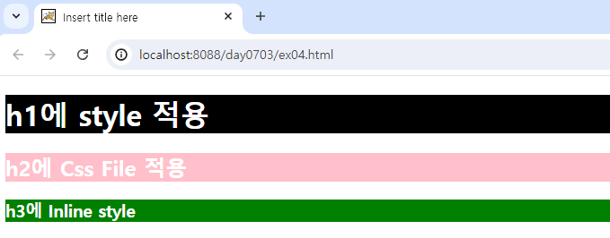 <h3 style="color: white; background: green;">h3에 Inline style</h3>